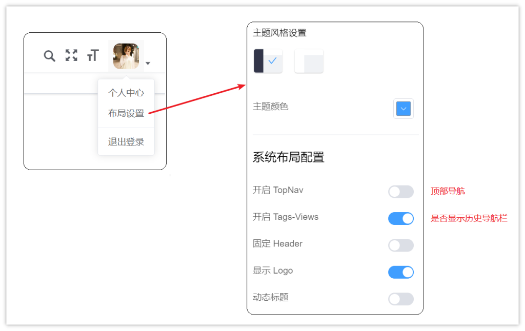 操作:点击右上角的头像,可以找到布局设置,如下操作