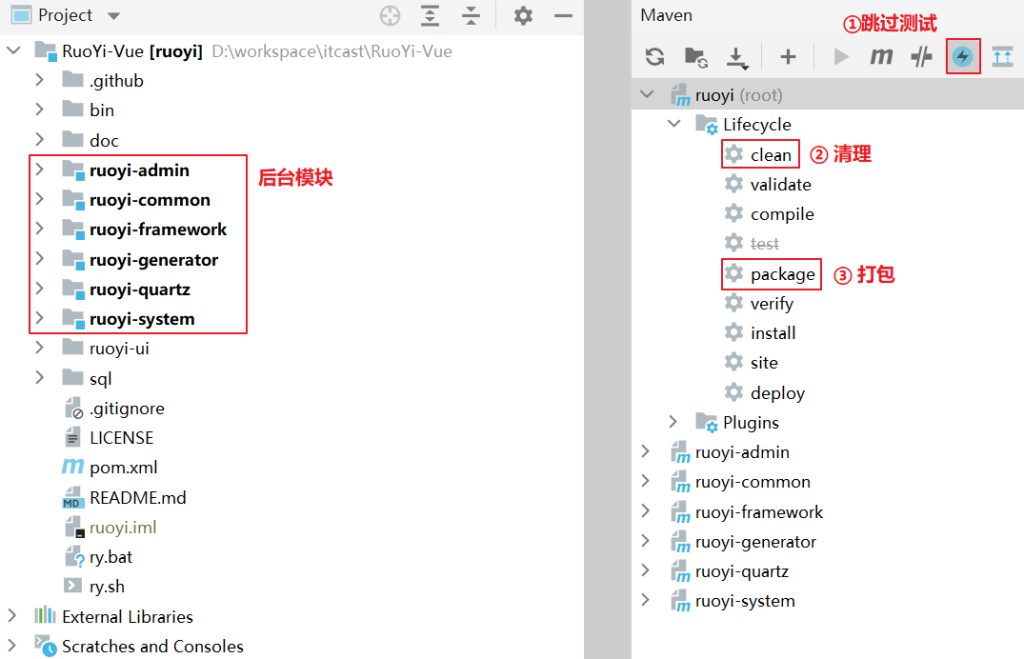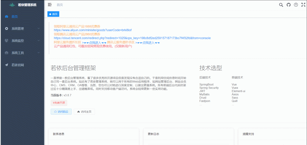 lRuoYi-Vue版本,采用了前后端分离的单体架构设计: