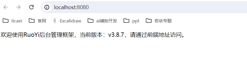 后端运行成功可以通过([http://localhost:8080 )访问,但是不会出现静态页面,可以继续参考下面步骤部署前端,然后通过前端地址来访问。