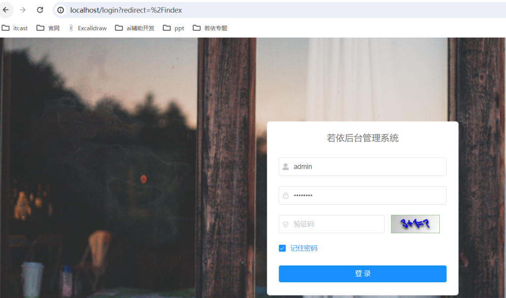 打开浏览器,输入:([http://localhost:80) 默认账户/密码 admin/admin123)若能正确展示登录页面,并能成功登录,菜单及页面展示正常,则表明环境搭建成功