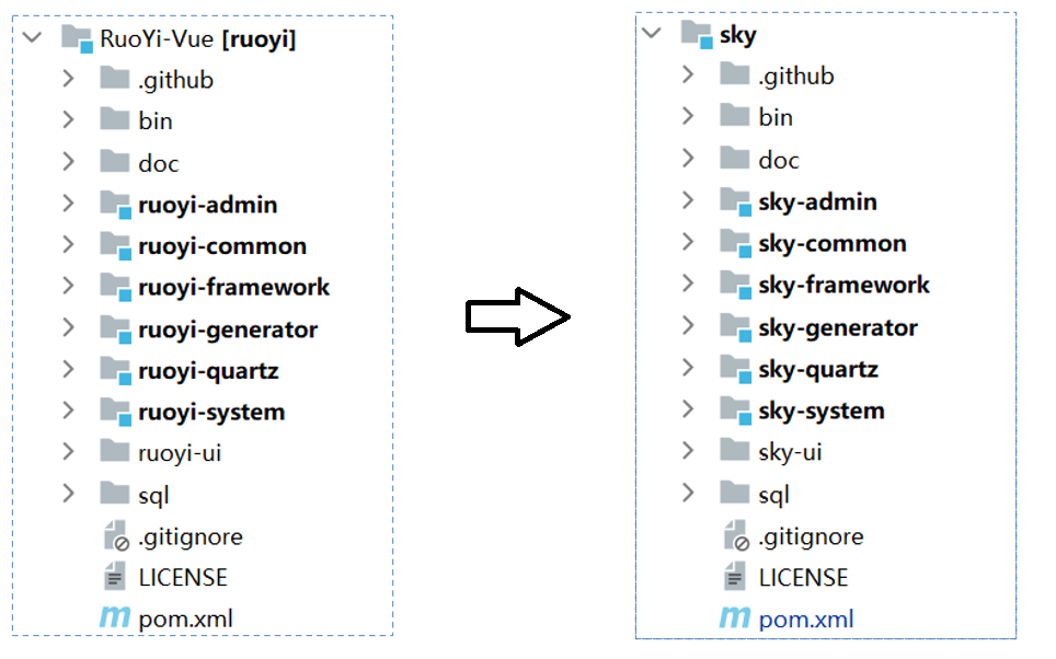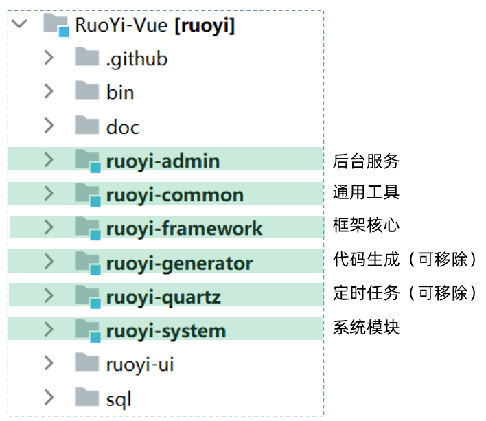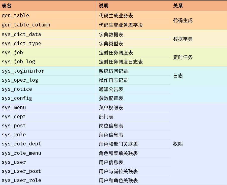 - 前后端混合版本:RuoYi结合了SpringBoot和Bootstrap的前端开发框架,适合快速构建传统的Web应用程序,其中前端和后端代码在同一项目中协同工作。