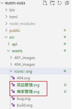 将下载好的图标复制到src/assets/icons/svg目录下,就可以给指定菜单设置图标了