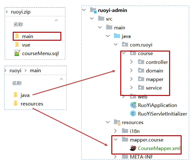 将生成的后端代码和mappep文件,导入ruoyi-admin模块中