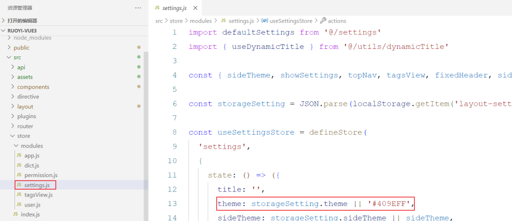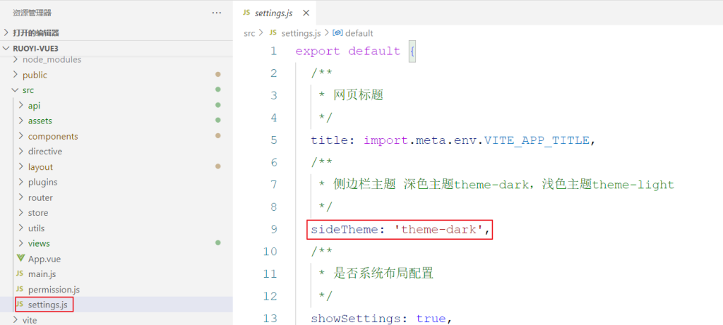 在前端代码中也有对应的操作,更好主题风格文件位置:src/setting.js
