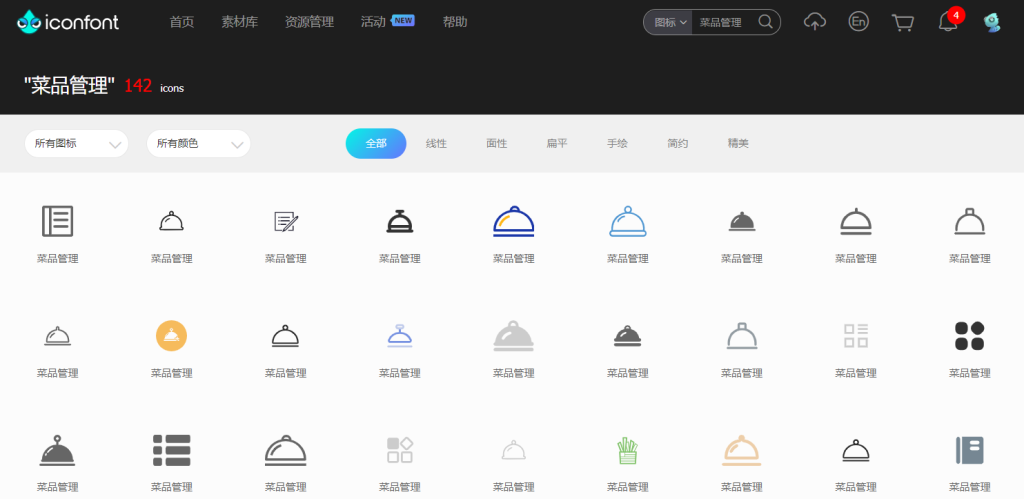 访问阿里巴巴矢量图库,搜索图标:https://www.iconfont.cn/search/index?searchType=icon&q=%E8%8F%9C%E5%93%81%E7%AE%A1%E7%90%86